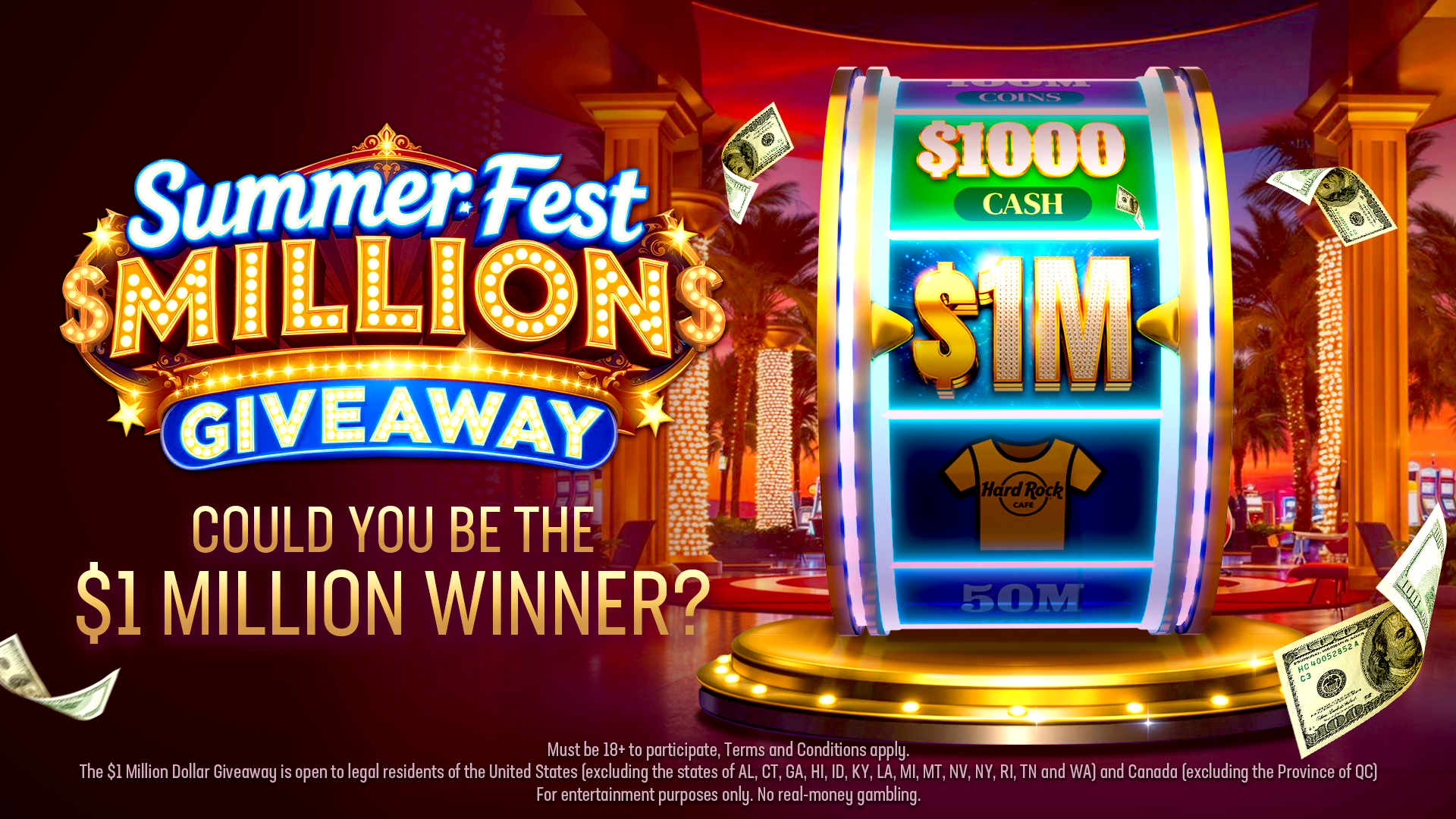 Register during the Entry Period to take part in the $1 Million Dollar Giveaway across Jackpot Planet and Neverland Casino.