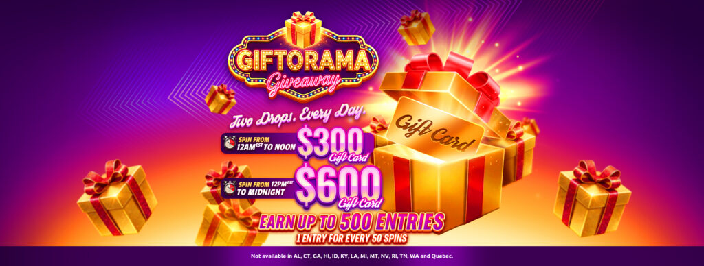 The Giftorama Giveaway is a limited-time Hard Rock Games promotion running April 7–10, 2026, giving eligible players a chance to win one of eight virtual Gift Card prizes worth $300 or $600, or equivalent. Explore more current and upcoming Hard Rock Games giveaways.