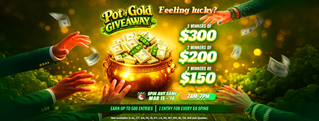 Chase your share of the cash in the Pot of Gold Giveaway. From March 15, 2026 at 7:00 AM ET through March 20, 2026 at 6:59 PM ET, eligible players can play free in Hard Rock Neverland Casino and Hard Rock Jackpot Planet for the chance to win one of 21 cash prizes. This social casino giveaway features three prize days packed with chances to win, so jump into your favorite slots and slot games, enjoy free currency play, and keep the excitement rolling all week.