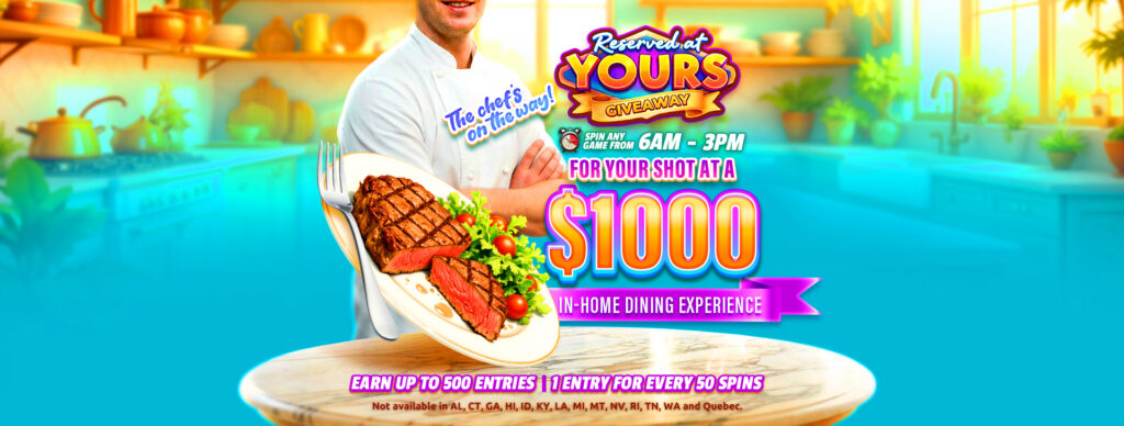 Make your next social casino run taste even better. The Reserved at Yours Giveaway is live March 6, 2026 at 6:00 PM ET through March 9, 2026 at 2:59 AM ET in Hard Rock Jackpot Planet and Hard Rock Neverland Casino. Play slots and explore hits like Cash Eruption, Regal Riches, Wheel of Fortune, and more to earn entries with free currency play. Three winners will each take home a $1,000 Personal Chef In-Home Dining Experience for Four via Snappy, or equivalent.