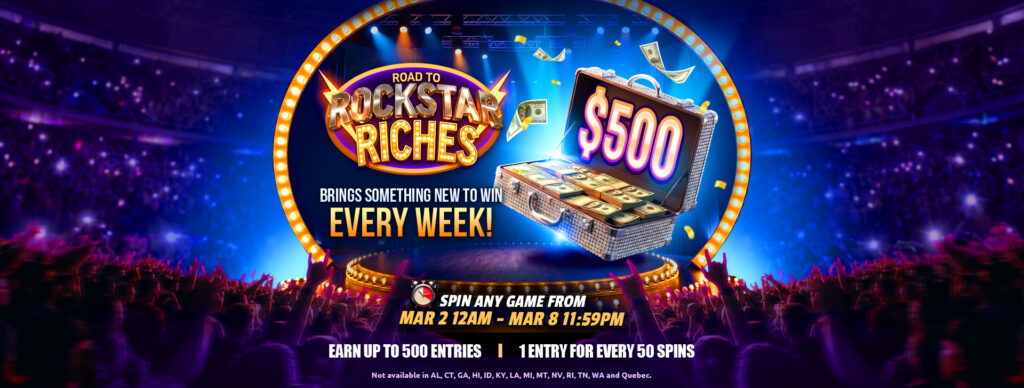 Take your shot at a cash win in our free social casino apps, Hard Rock Neverland Casino and Hard Rock Jackpot Planet. The Road to Rockstar Riches Giveaway runs from March 2, 2026 at 12:00:01 AM ET through March 8, 2026 at 11:59 PM ET. Spin slots and slot games like Cash Eruption, Regal Riches, Wheel of Fortune, and more to earn entries all week long. One winner will be selected in a random drawing on or around March 9, 2026 and will receive a $500 cash prize in the form of an electronic payment, or equivalent. No purchase required.